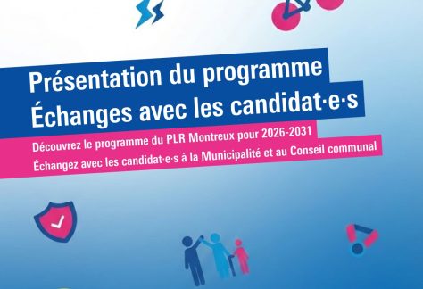 Notre programme est résolument orienté pour : soutenir un développement économique et culturel dynamique, garantir une gestion rigoureuse des finances, promouvoir un aménagement du territoire durable, soutenir des projets intergénérationnels, renforcer la sécurité publique. Proche et à l’écoute, le PLR s’engage, avec vous, pour le renouveau de Montreux.